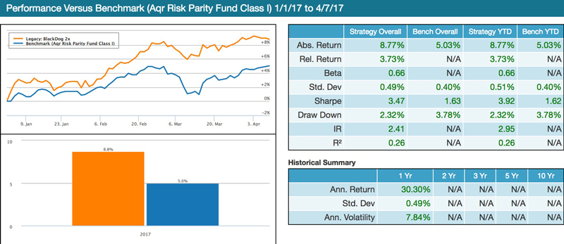 Image 2: BlackDog YTD– benchmark is AQR’s Risk Parity Fund Class B