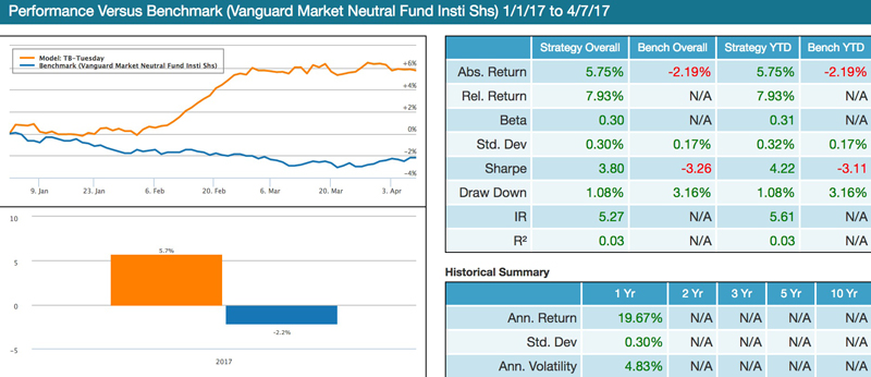 Image 1: Tiebreaker YTD– benchmark is VMNIX (Vanguard Market Neutral Fund Institutional Shares