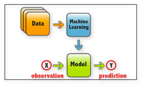 Image 1: A scheme describing how sample data is “trained” via machine learning. The machine learning algorithm attempts to build a model or a function to generalize input observation data to predict an output.