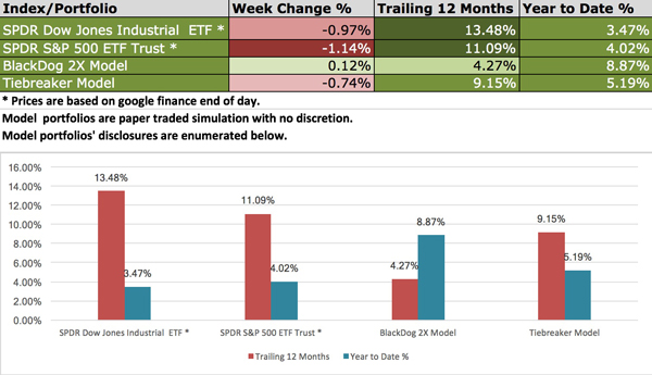 For those of you unfamiliar with BlackDog and Tiebreaker, here is a brief overview: BlackDog and Tiebreaker are two out of an assortment of model strategies that we offer our clients. Our team of quants is constantly on the hunt for innovative investment ideas. Lucena’s model portfolios are a byproduct of some of our best research, packaged into consumable model-portfolios. The performance stats and charts presented here are a reflection of paper traded portfolios on our platform, QuantDesk®. Actual performance of our clients’ portfolios may vary as it is subject to slippage and the manager’s discretionary implementation. We will be happy to facilitate an introduction with one of our clients for those of you interested in reviewing live brokerage accounts that track our model portfolios.