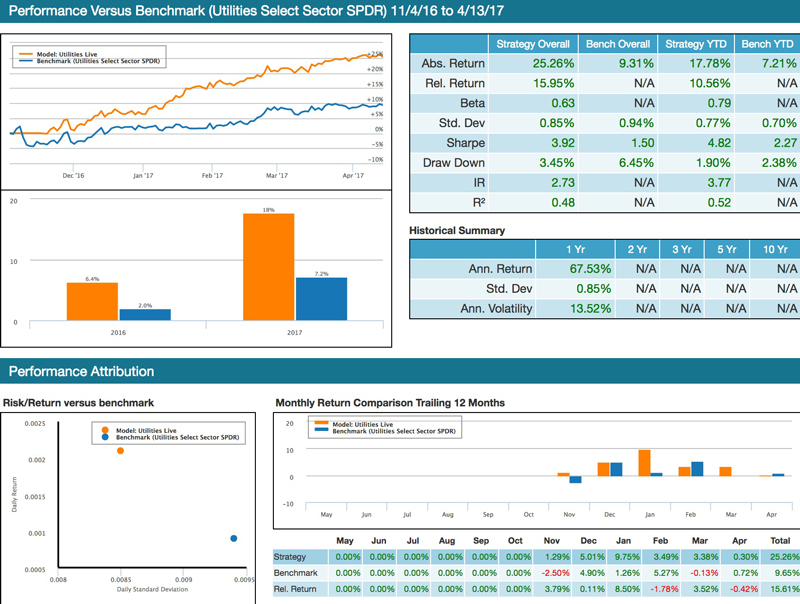 Image 3: Utilities based strategy– captured since November of 2016. Benchmark is XLU – Utilities select sector SPDR