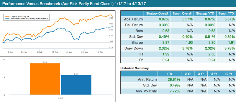 Image 2: BlackDog YTD– benchmark is AQR’s Risk Parity Fund Class B
