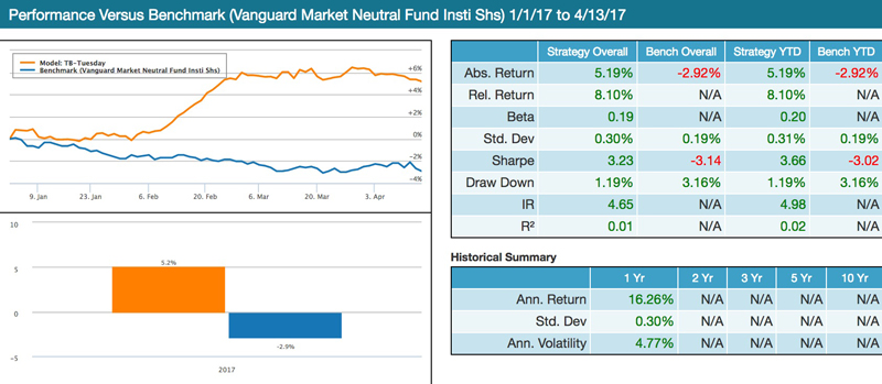 Image 1: Tiebreaker YTD– benchmark is VMNIX (Vanguard Market Neutral Fund Institutional Shares