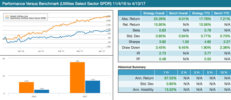Image 1: Forward paper trading Utility live since November 4, 2016 – year-to-date return stands at 18.78% and max drawdown for the year is minimal at 1.9%. Excess return against the benchmark for the year 10.57%.