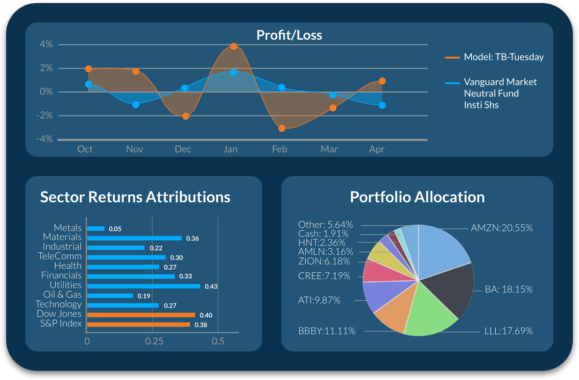 - Comprehensive performance reports with factor attribution and transaction history.